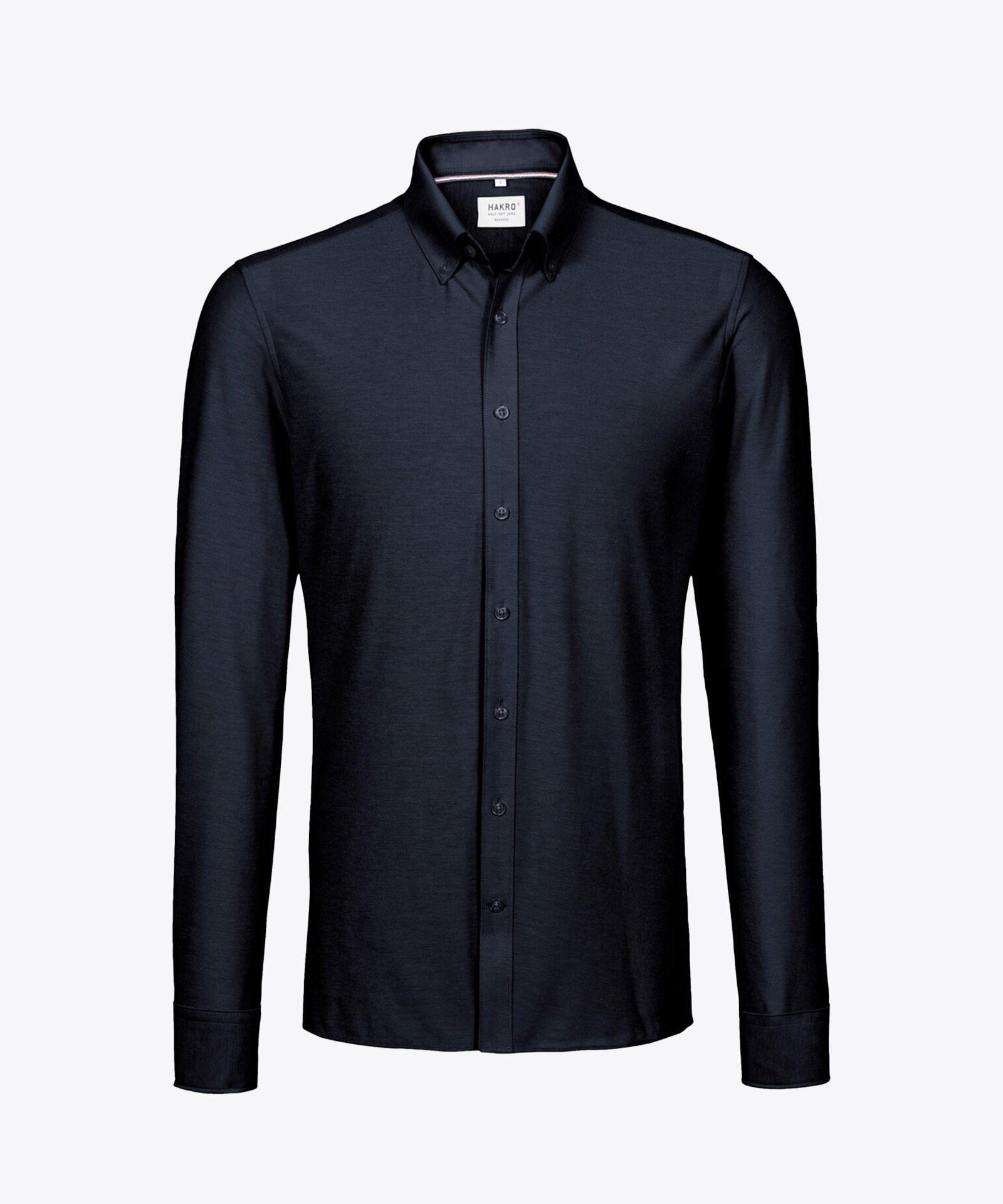 Modisches Hemd mit Button-down-Kragen. Leicht tailliert durch Abnäher im Rückenteil. Knöpfe Ton in Ton (Farbe Ozeanblau: Knöpfe in Farbe Weiß), Paspel aus dunkelblauem Satin an der inneren Kragennaht, doppelte Schulterpasse, Doppelkappnaht an den Seitennähten, weitenverstellbare Manschetten und leicht gerundeter Saum. Bügelleichte Jaquard-Maschenware aus strapazierfähiger Baumwoll-Polyester-Mischung. Tragekomfort und Elastizität durch die spezielle Stricktechnik. Verfügbar auch als Damenmodell. Normale Passform: Regular Fit.