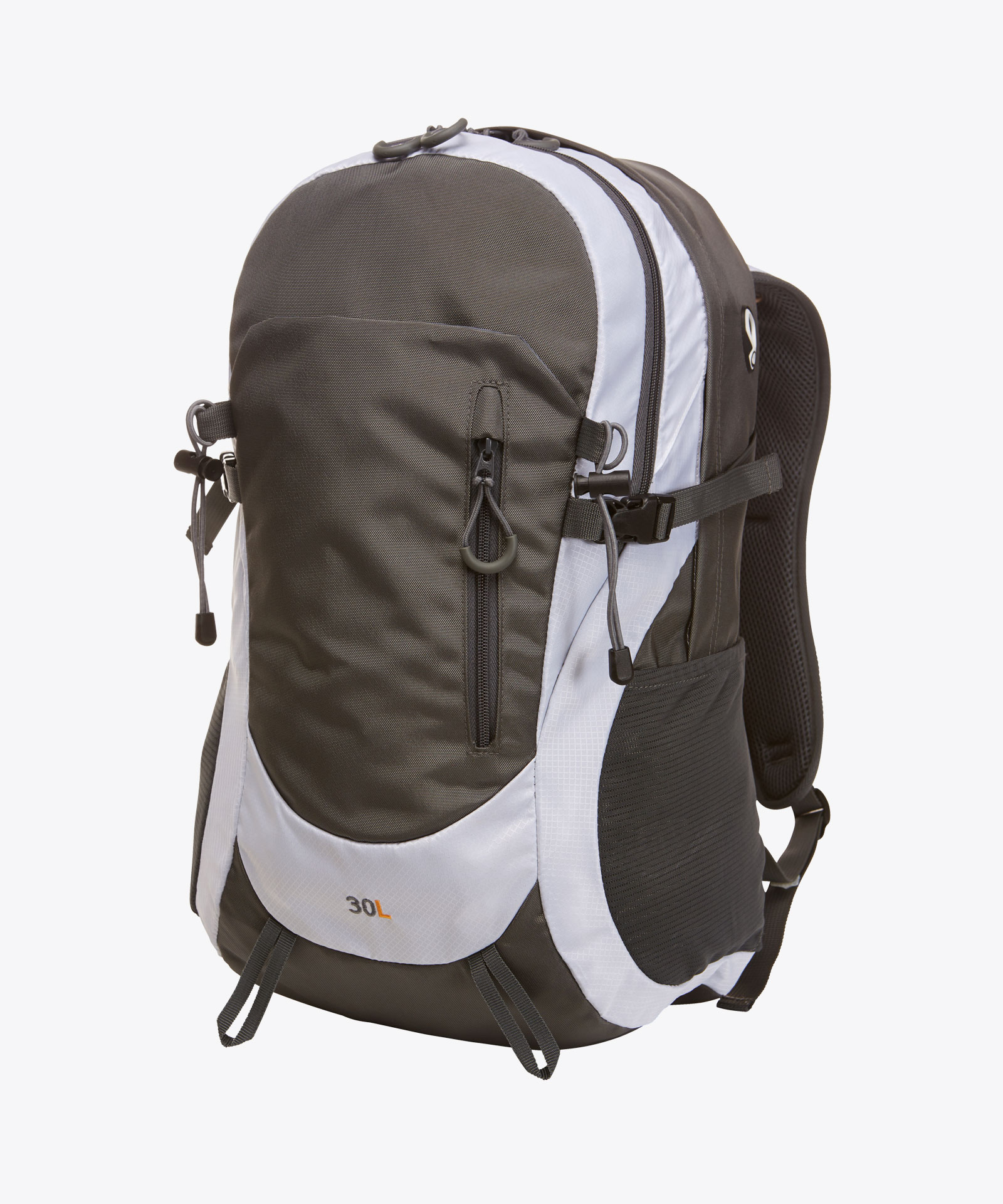 Leichter, funktioneller Rucksack mit optimal gepolstertem Rücken; großes Hauptfach mit flachem Einsteckfach innen und Kopfhörerausgang; zwei Seitentaschen; Wanderstockfixierung; seitliche Zurrgurte; Bodenfach mit Regenhülle; gepolsterte Träger mit oberer und unterer Längenverstellung; gepolsterter Beckengurt mit Reißverschlusstaschen; höhenverstellbarer Brustgurt