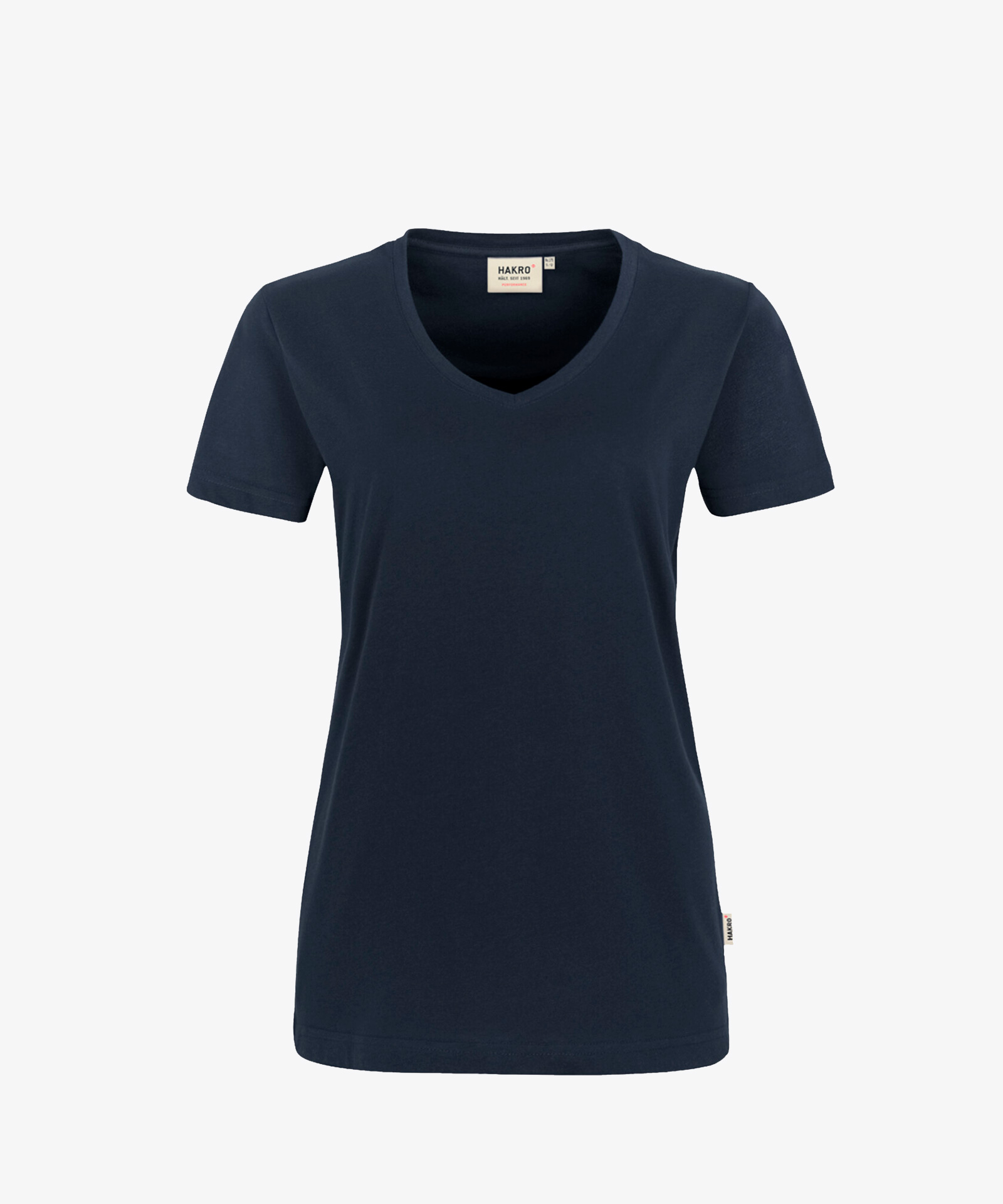 Besonders strapazierfähiges T-Shirt mit V-Ausschnitt, geripptem Halsbündchen und Nackenband. Leasingkoller zur einfachen Kennzeichnung in der gewerblichen Wäscherei und Aufhängebänder im Saum. Mittelschwerer, besonders pflegeleichter und funktioneller Single-Jersey aus MIKRALINAR®, dem HAKRO Performance-Materialmix aus Baumwolle und Polyester. Verfügbar auch als Unisexmodell mit Rundhalsausschnitt. Normale Passform: Regular Fit.