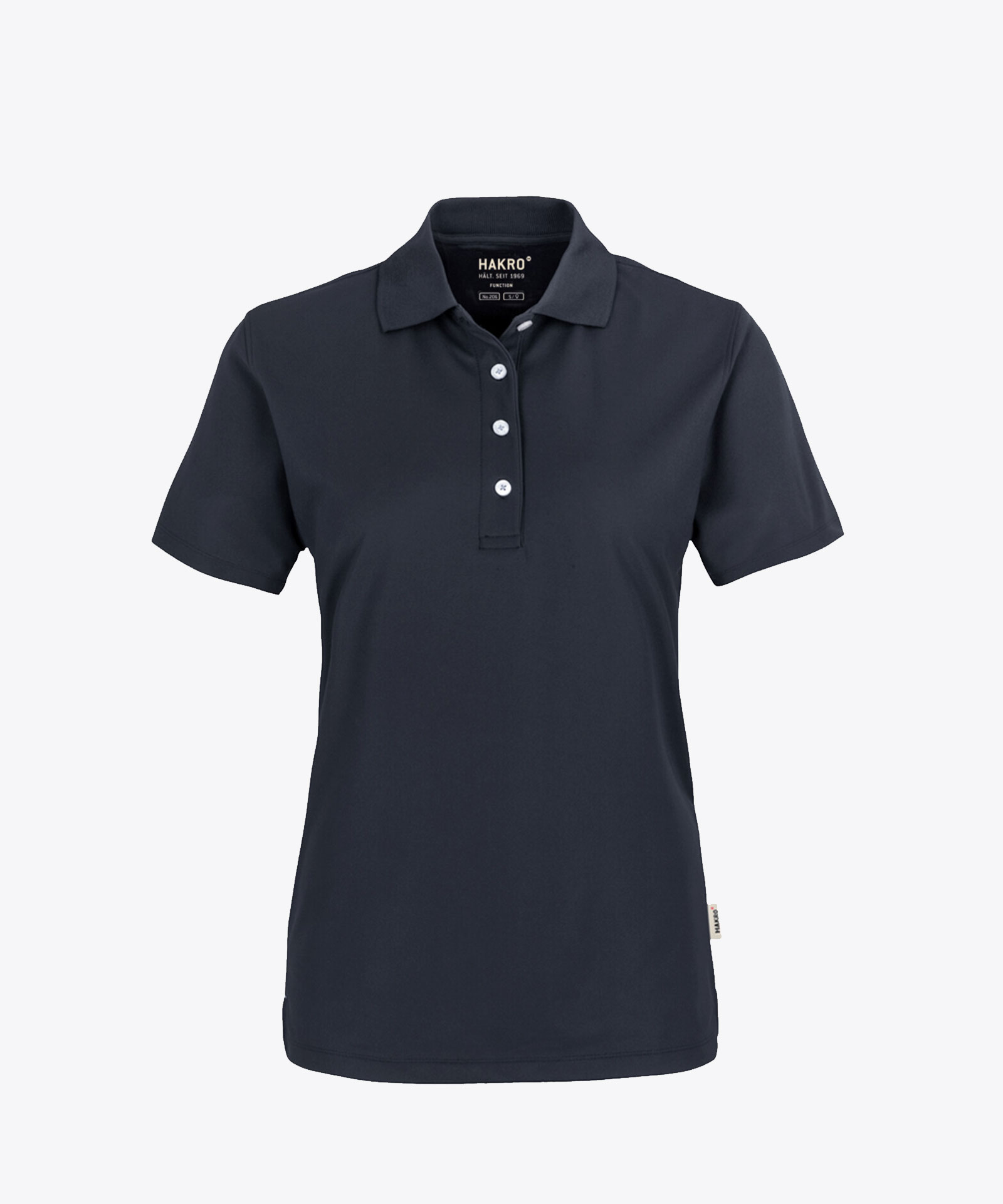 Funktionelles Poloshirt mit Vier-Loch Knopfleiste und Knöpfen in Kontrastfarbe Weiß. Gedrucktes HAKRO Nackenlabel und doppelt geriegelte Seitenschlitze. Das Piqué aus der Funktionsfaser COOLMAX® PRO ist temperaturregulierend, da Feuchtigkeit schnell an die Außenseite transportiert wird, wo sie verdunstet.