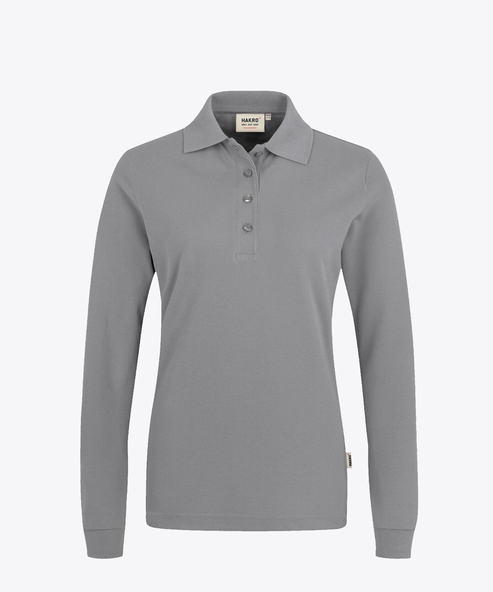 Besonders strapazierfähiges Langarm-Poloshirt mit Vier-Loch-Knopfleiste. Knöpfe Ton in Ton, Nackenband und doppelt geriegelte Seitenschlitze. Formstabile, LYCRA®-verstärkte Rippstrickbündchen. Leasingkoller zur einfachen Kennzeichnung in der gewerblichen Wäscherei und Aufhängebänder im Saum. Feinmaschiges, besonders pflegeleichtes und funktionelles Piqué aus MIKRALINAR®, dem HAKRO Performance-Materialmix aus