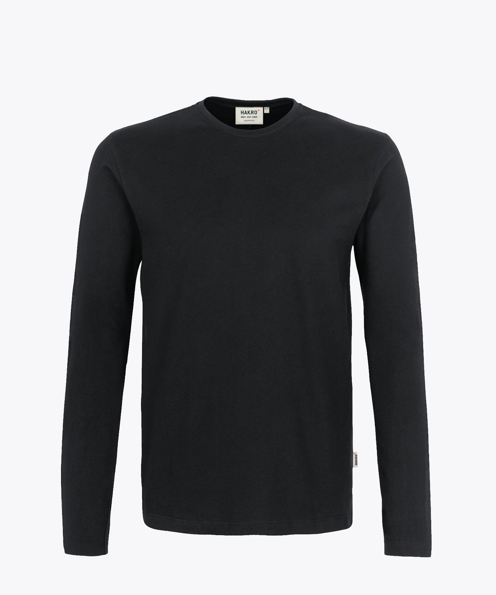 Hochwertiges Langarmshirt mit Rundhalsausschnitt, schmalem Halsbündchen und Nackenband. Schweres Single-Jersey und Elasthan-verstärktes Halsbündchen. Verfügbar auch als Damenmodell. Figurbetonte Passform: Body Fit.