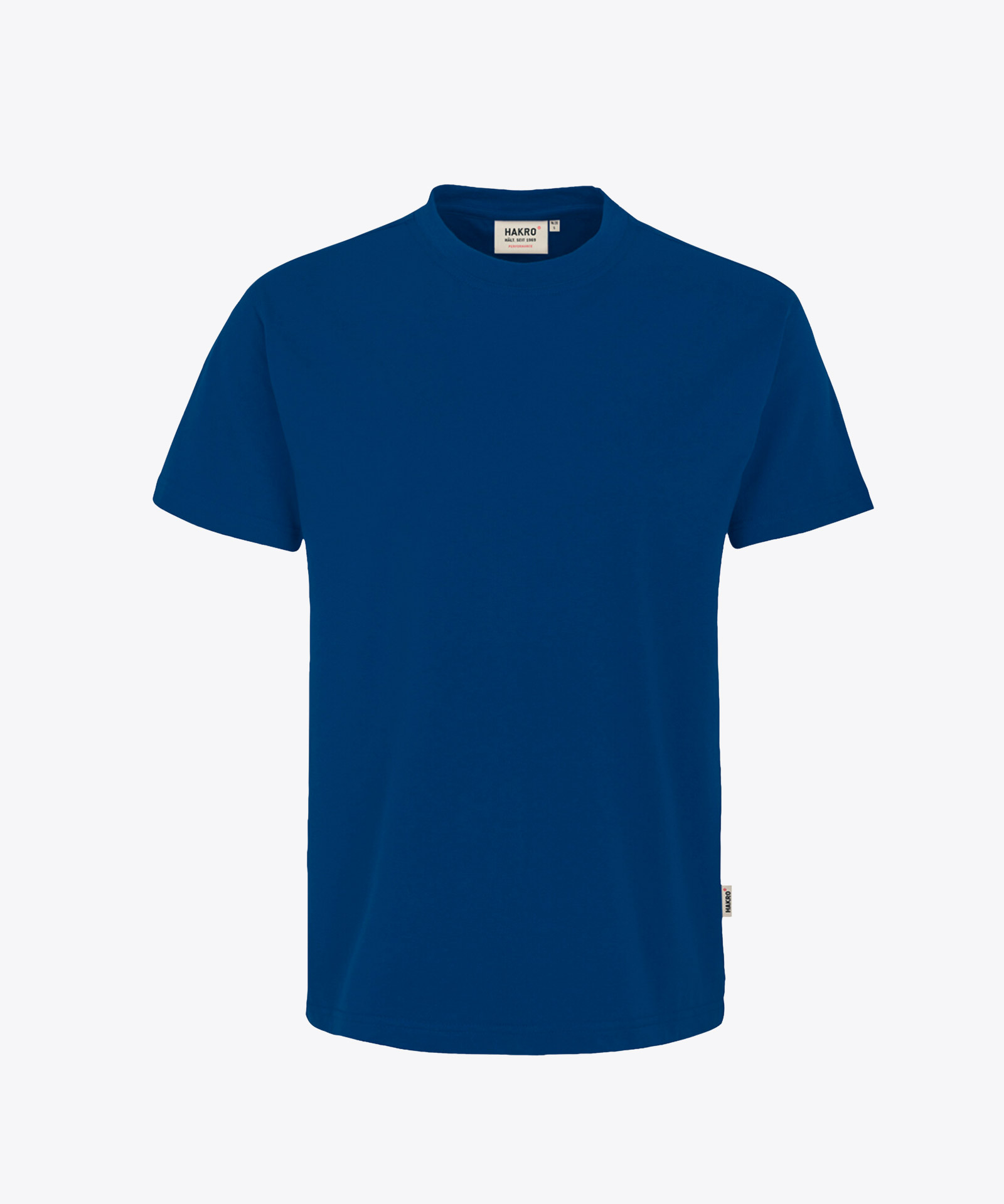 Besonders strapazierfähiges T-Shirt mit Rundhalsausschnitt, geripptem Halsbündchen und Nackenband. Leasingkoller zur einfachen Kennzeichnung in der gewerblichen Wäscherei und Aufhängebänder im Saum. Mittelschwerer, besonders pflegeleichter und funktioneller Single-Jersey aus MIKRALINAR®, dem HAKRO