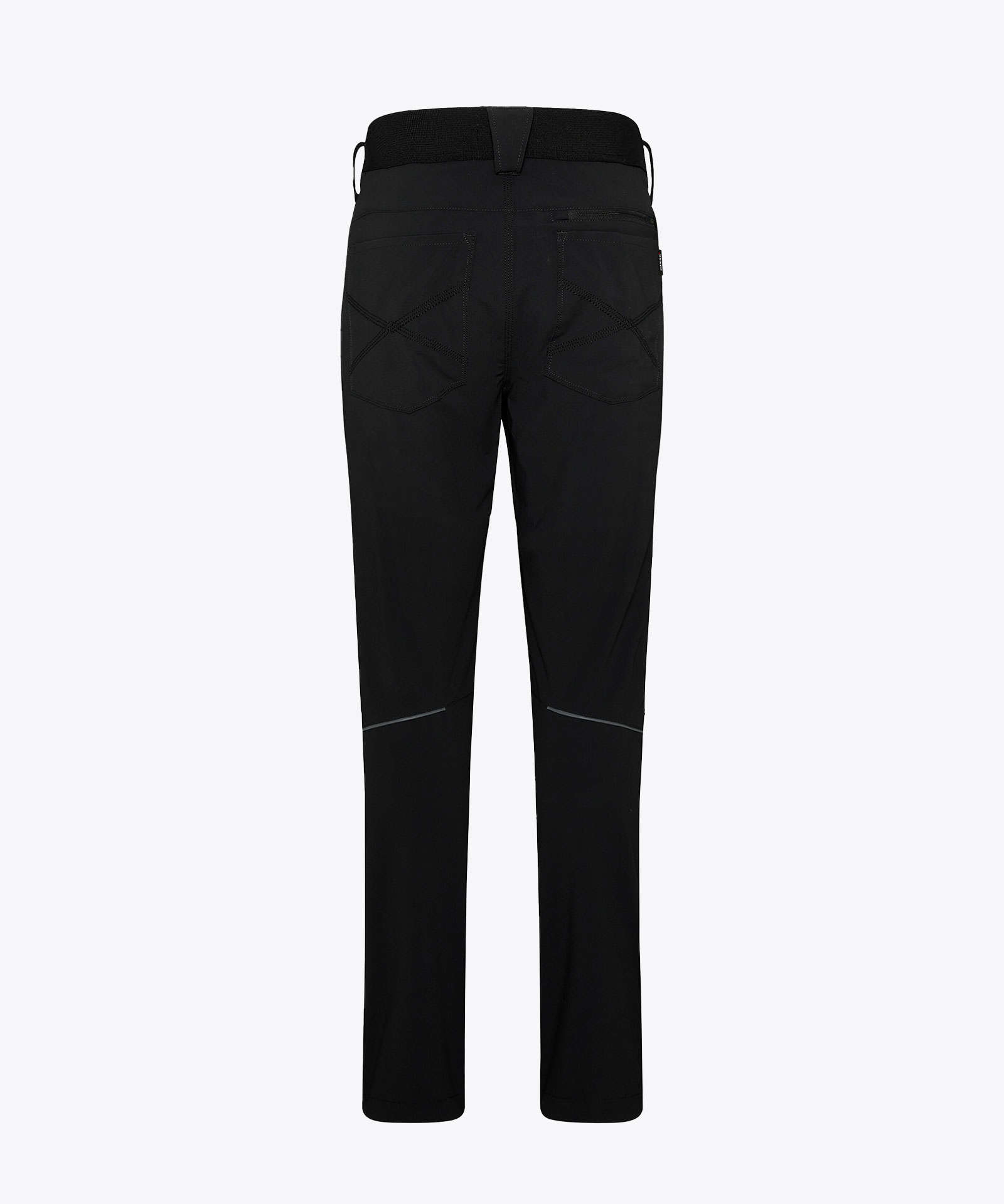 Leichte und funktionelle Hose mit dehnbarem Hosenbund durch robusten Strickeinsatz hinten. Sicherheitsknopf, Reißverschluss, Gürtelschlaufen, eingenähte Reflexbänder und ergonomisch vorgeformte Passform. Zwei Einschubtaschen mit Reißverschluss, zwei Gesäßtaschen mit Stickerei und Reißverschlusstasche