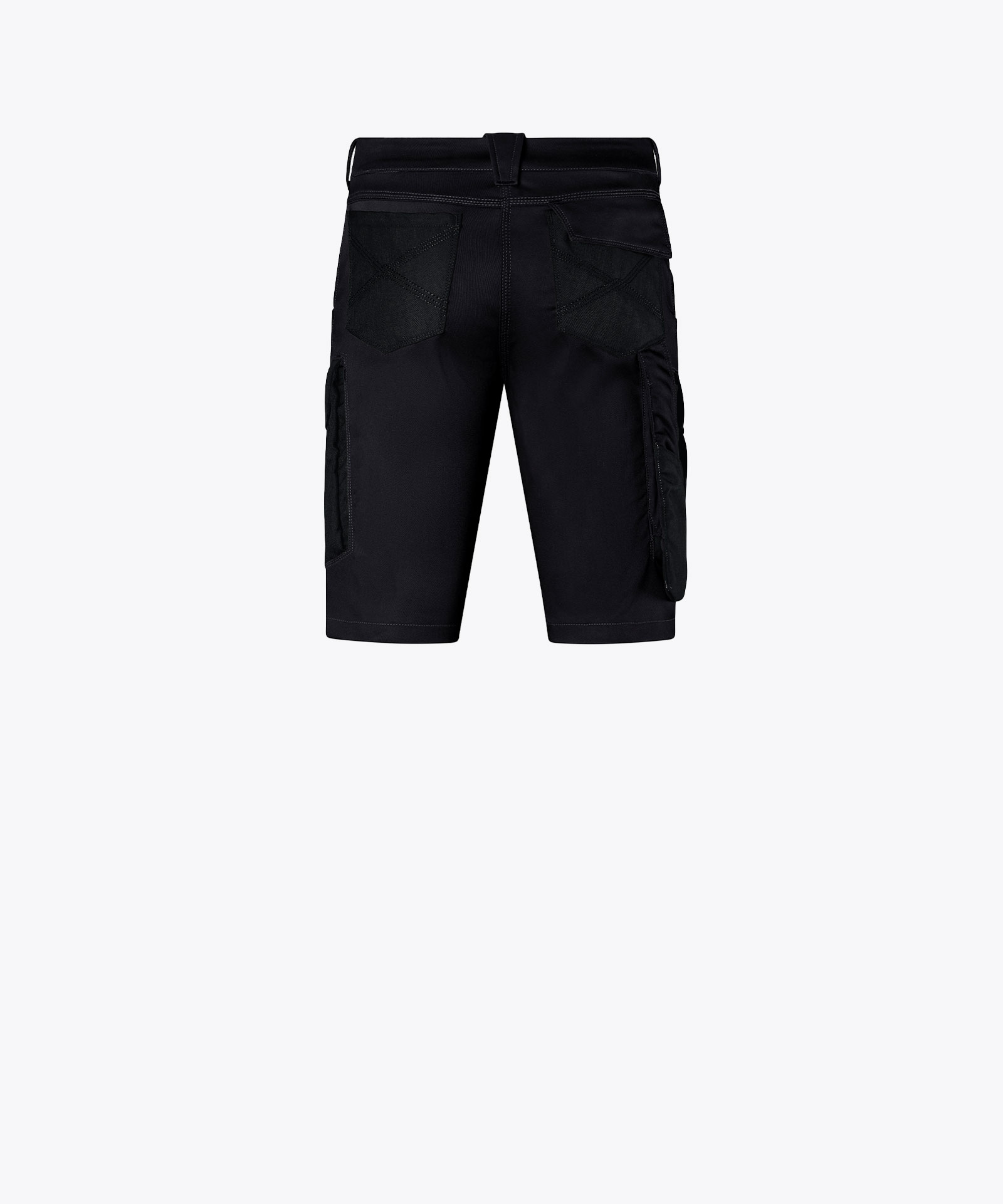 Extrem strapazierfähige und funktionelle Shorts mit dehnbarem Hosenbund durch robuste Strickeinsätze an den Seiten. Sicherheitsknopf, Reißverschluss, Gürtelschlaufen, eingenähte Reflexbänder und ergonomisch vorgeformte Passform. Zwei Einschubtaschen, rechts mit zusätzlicher Sicherheits-Reißverschlusstasche. Zwei Gesäßtaschen mit Stickerei, rechts mit Patte und Klettverschluss. Zwei Cargotaschen mit multifunktionellen
