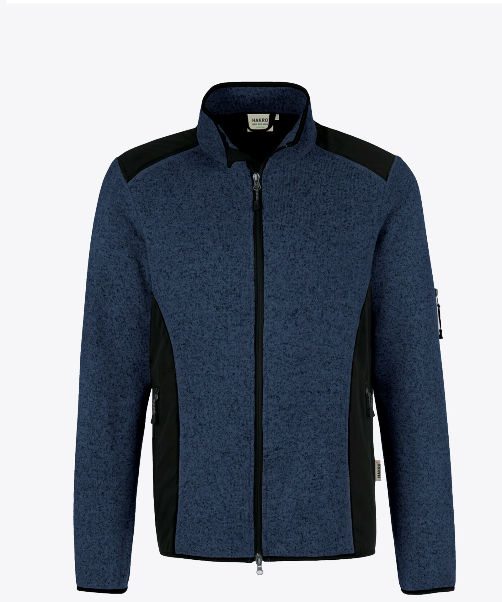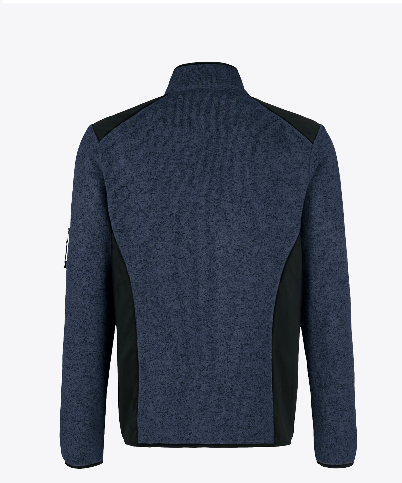 Strickfleecejacke mit Softshell-Einsätzen an den Seiten und Schultern in Kontrastfarbe Schwarz. Teilungsnähte im Vorder und Rückenteil. Elastische Saum- und Ärmelbündchen, Nackenband und Aufhängeband. Hochwertiger 2-Wege-Frontreißverschluss in Kontrastfarbe Schwarz, seitliche Reißverschlusstasche und Reißverschluss-Ärmeltasche am linken Ärmel. Alle Reißverschlüsse von YKK®. Atmungsaktives Strickfleece und leichtes,