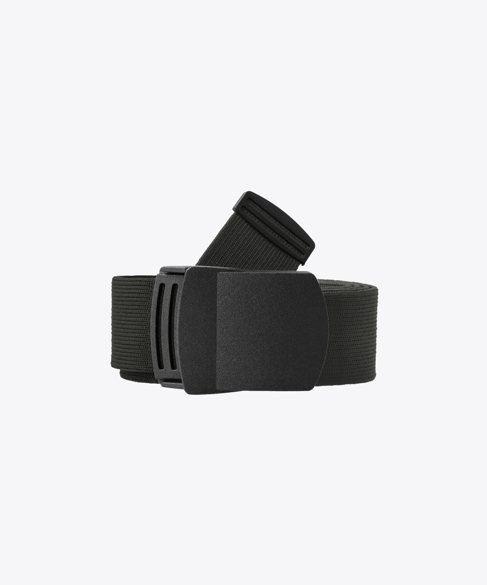 Robuster, reißfester und elastischer Gürtel aus schwerentflammbarem, recyceltem Gewebe aus Polyester und einer hochwertigen, stabilen Klemmschließe aus Polyamid. Die Länge ist individuell einstellbar und durch die Klemmschließe kann der Gürtel auf jedes Maß gekürzt und angepasst werden. Bundweite 120 cm, vier Zentimeter breit