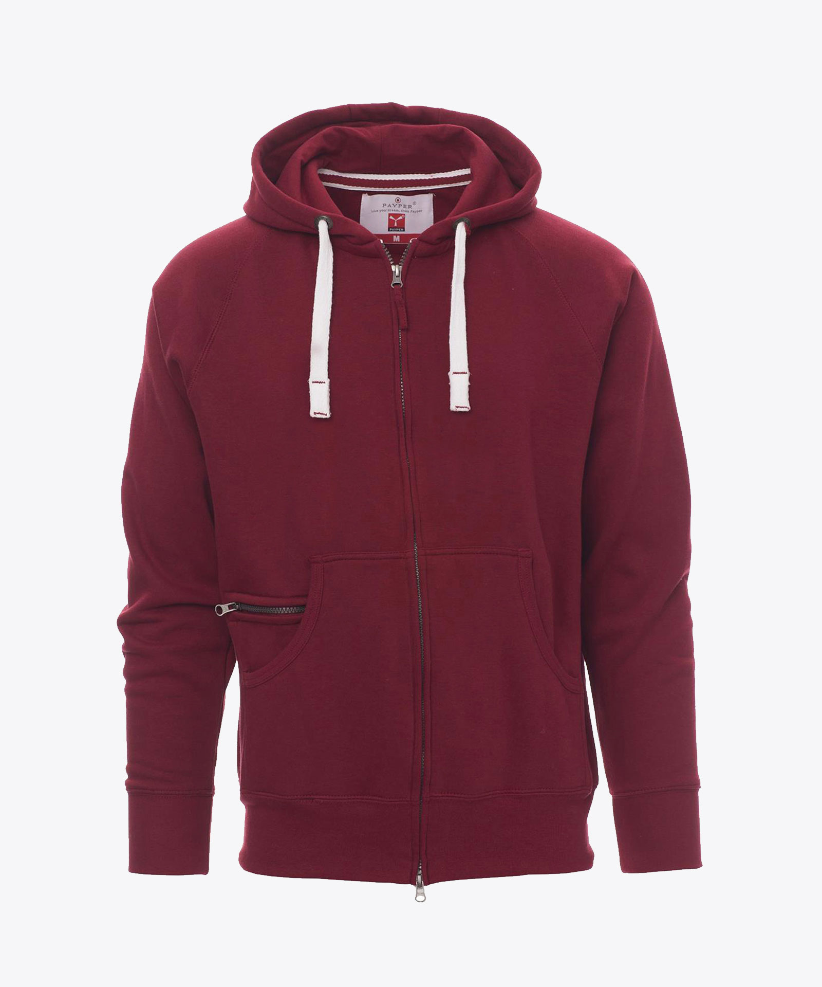 Herren-Sweatjacke mit durchgehendem, verdecktem 2-Wege-SBSReißverschluss aus Kunststoff mit Metallschieber, Kapuze mit zwei Nähten und weißem Kordelzug, Nähten Ton-in-Ton und Metallösen, Raglanärmeln, Kängurutaschen mit Reißverschlusstäschchen, elastischem Feinripp an