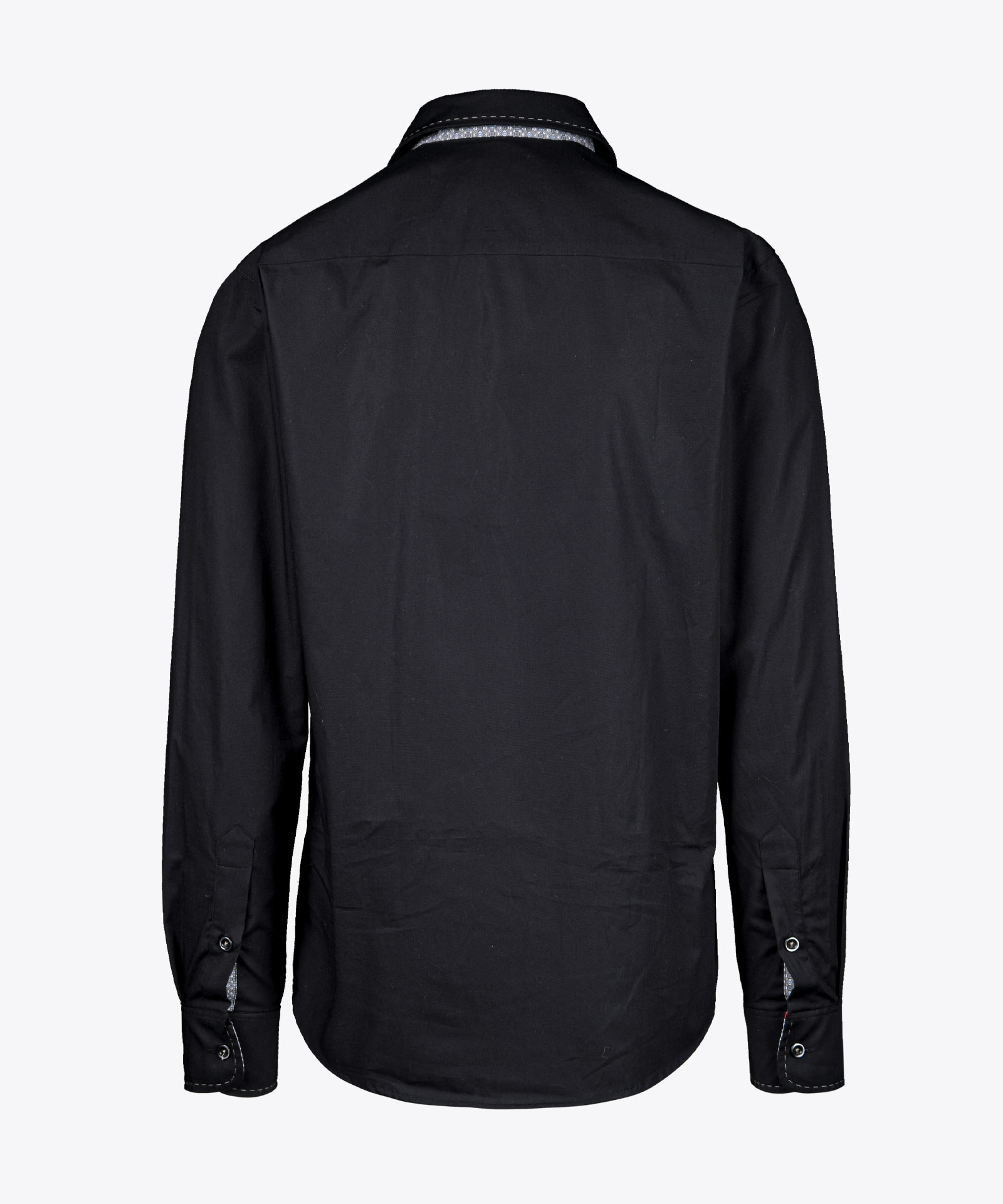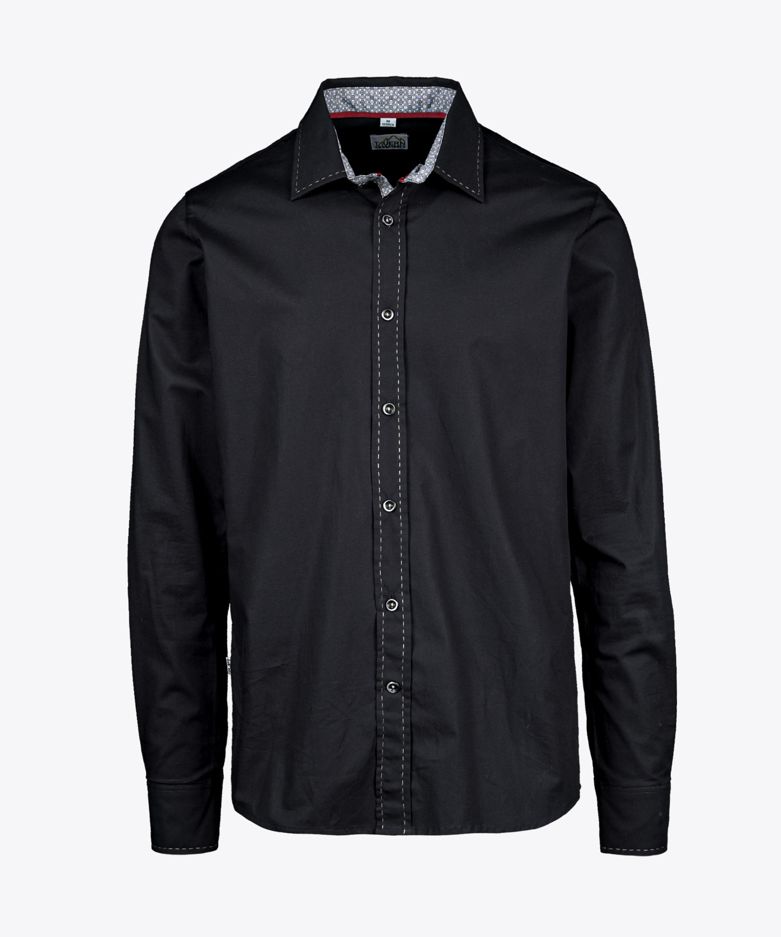 Klassisches Hemd mit Farbdetails an Stoffbesätzen innen; aufgesetzte Knopfleiste und Kragenkante mit Kontrast-Ziernaht; Kentkragen