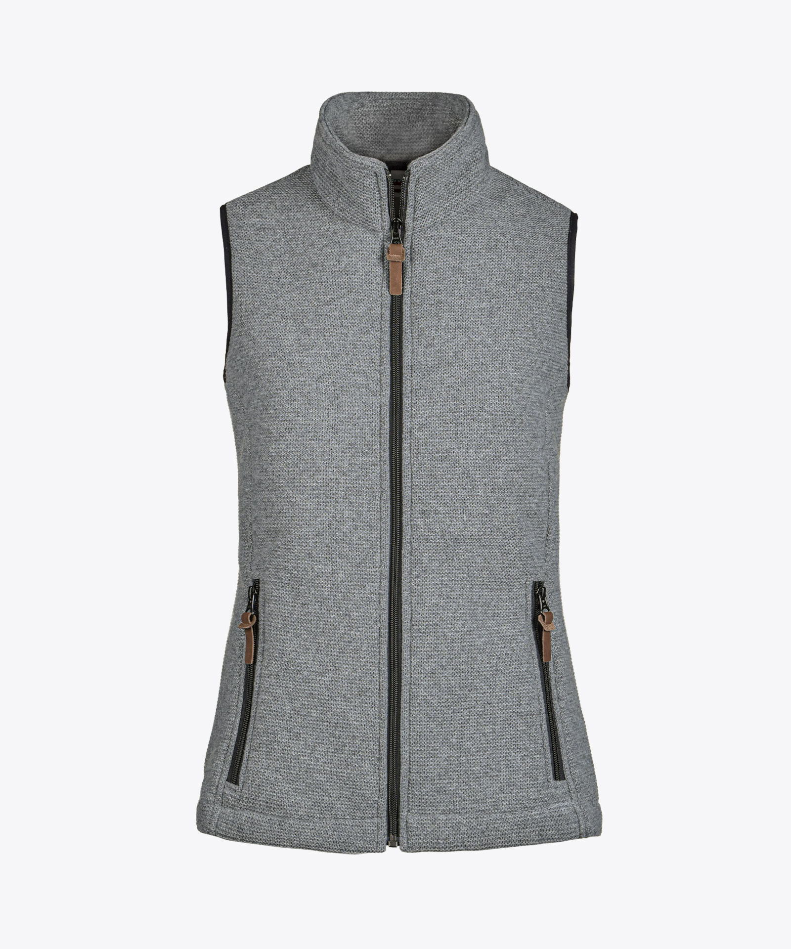 Linksstrick mit gebondeter Jerseyinnenseite in Grau-Melange; zwei Zipptaschen; abnehmbare Echtleder-Zippangreifer; Elastikeinfassung am Armabschluss; ungefüttert Material Außenseite: 45% Wolle, 33% Viskose, 16% Polyamid, 4% sonstige Fasern, 2% Elasthan Material Innenseite: 78% Polyester, 17% Viskose, 5% Elasthan