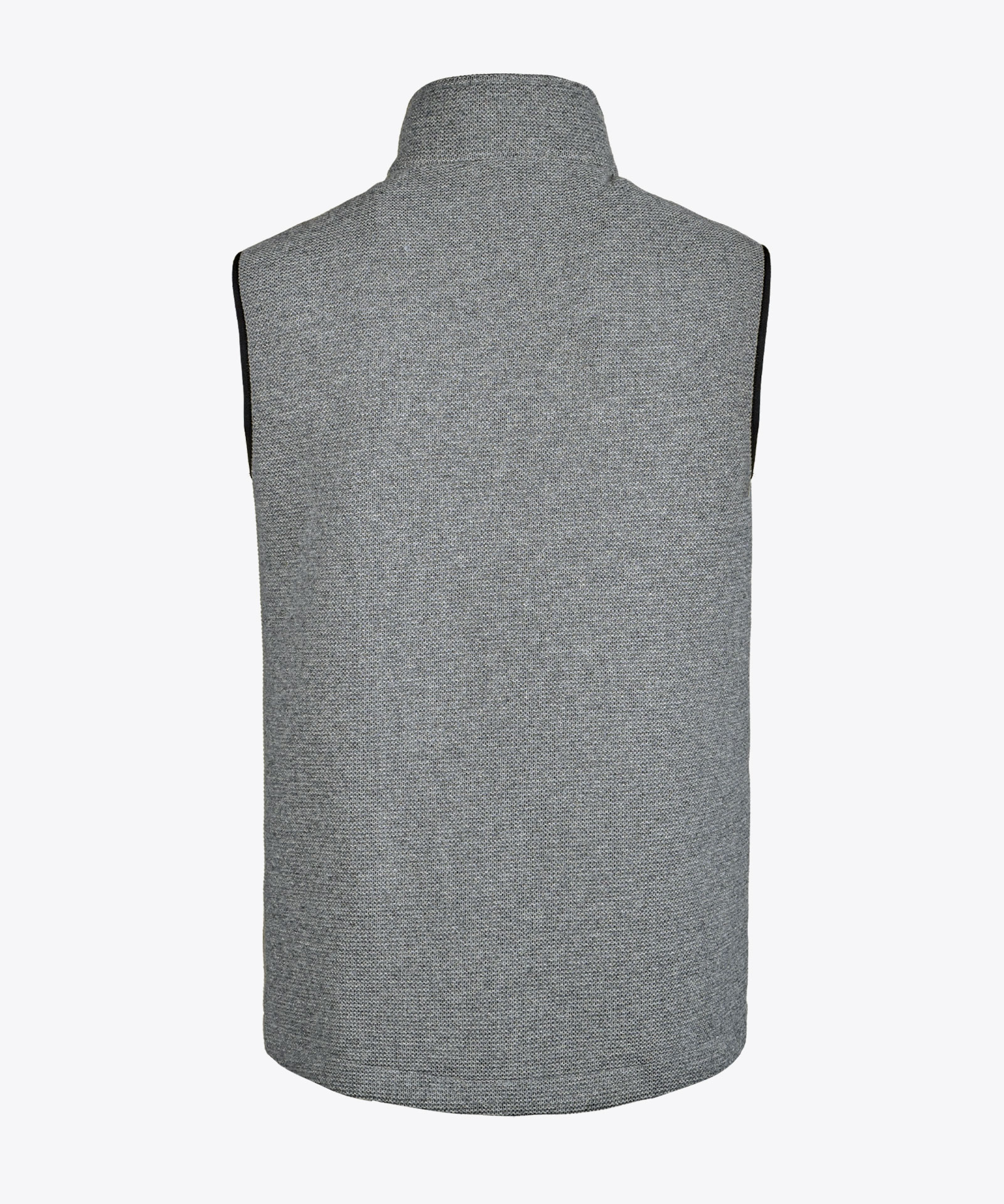 Linksstrick mit gebondeter Jerseyinnenseite in Grau-Melange; zwei Zipptaschen; abnehmbare Echtleder-Zippangreifer; Elastikeinfassung am Armabschluss; ungefüttert Material Außenseite: 45% Wolle, 33% Viskose, 16% Polyamid, 4% sonstige Fasern, 2% Elasthan Material Innenseite: 78% Polyester, 17% Viskose, 5% Elasthan