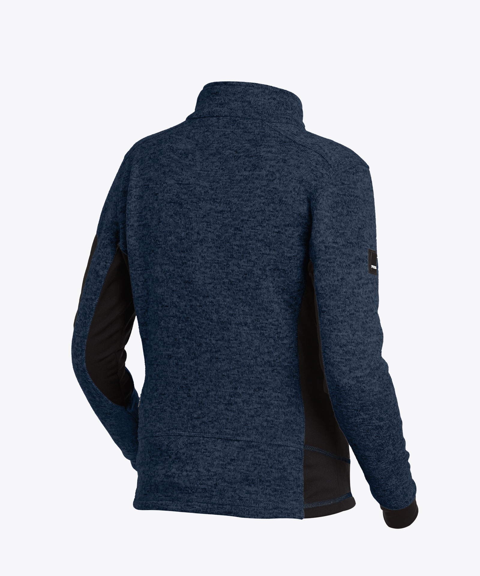Wärmende und anschmiegsame Strickfleecejacke, körpernahe modische Passform, elastische schwarze Seitenbereiche aus 100% Polyester, zwei geräumige vordere Reißverschluss-Seitentaschen und eine großzügige Armtasche mit RV, zwei offene Innentaschen, YKK-Frontreißverschluss.