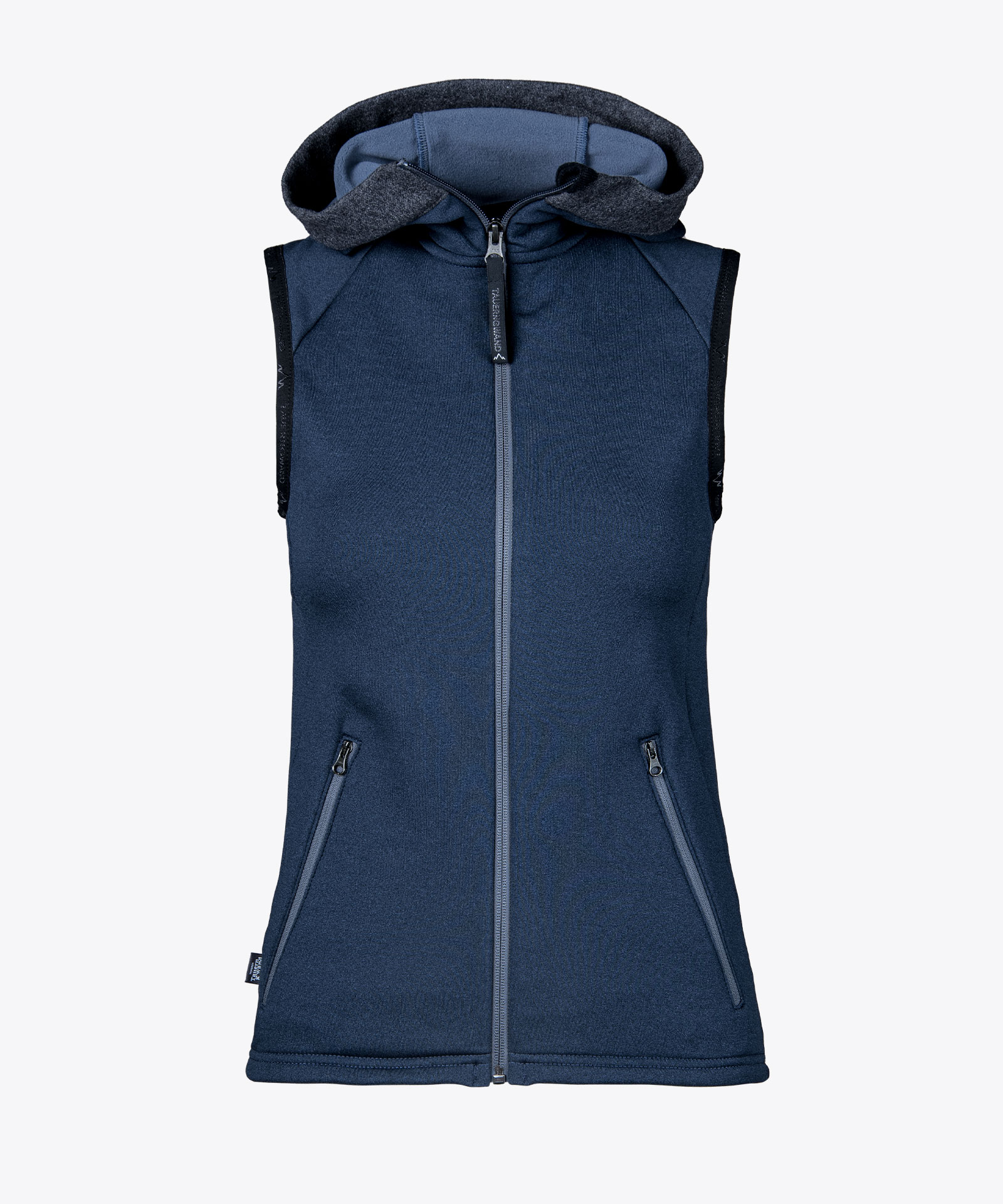 Angenehm weiches Tragegefühl in hochwertiger 4-Wege Tecno-Stretch-Fleecequalität mit hoher Bewegungsfreiheit trotz figurbetonter Passform; glatte Oberfläche mit Melange-Effekt, aufgeraute Innenseite, gute Wärmeisolation; Frontzipp und zwei Zipptaschen in kontrastfarbenen Grauton; Elastikeinfassung an Armabschluss in Farbe schwarz; angeschnittene Kapuze mit Kontraststoffeinfassung, optional für Wording-Logo-Druckgestaltung