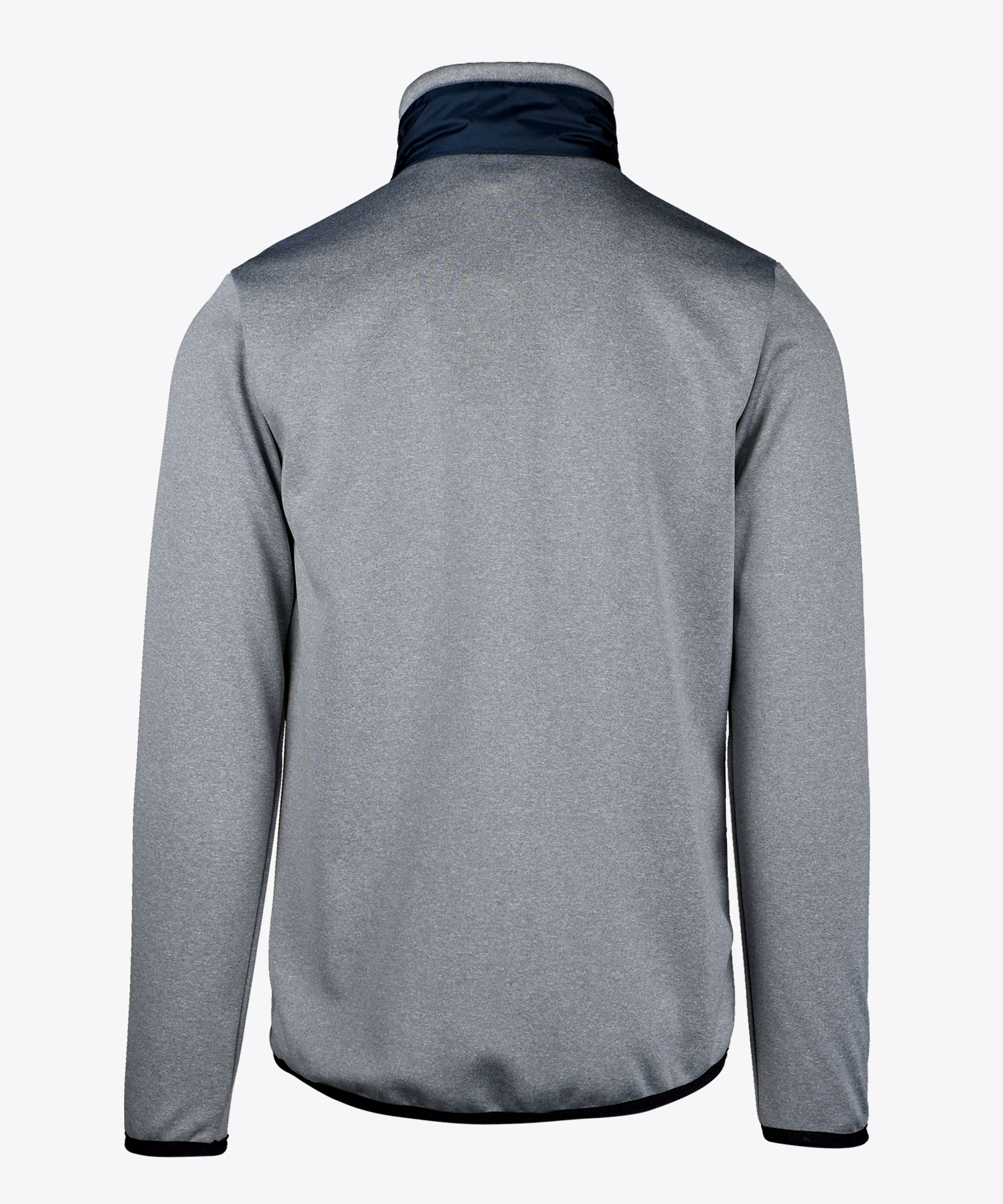 Allrounder-Midlayerjacke als Hybridmodell in Materialmix; wärmeisolierender Steppstoff am Vorderteil und elastisches Knitshell-Material an Ärmeln und Rücken in Melange; hochschließender Kragen; zwei Nahtzipptaschen, Innenzipptasche; Elastikeinfassung an Saum und Ärmelabschluss;