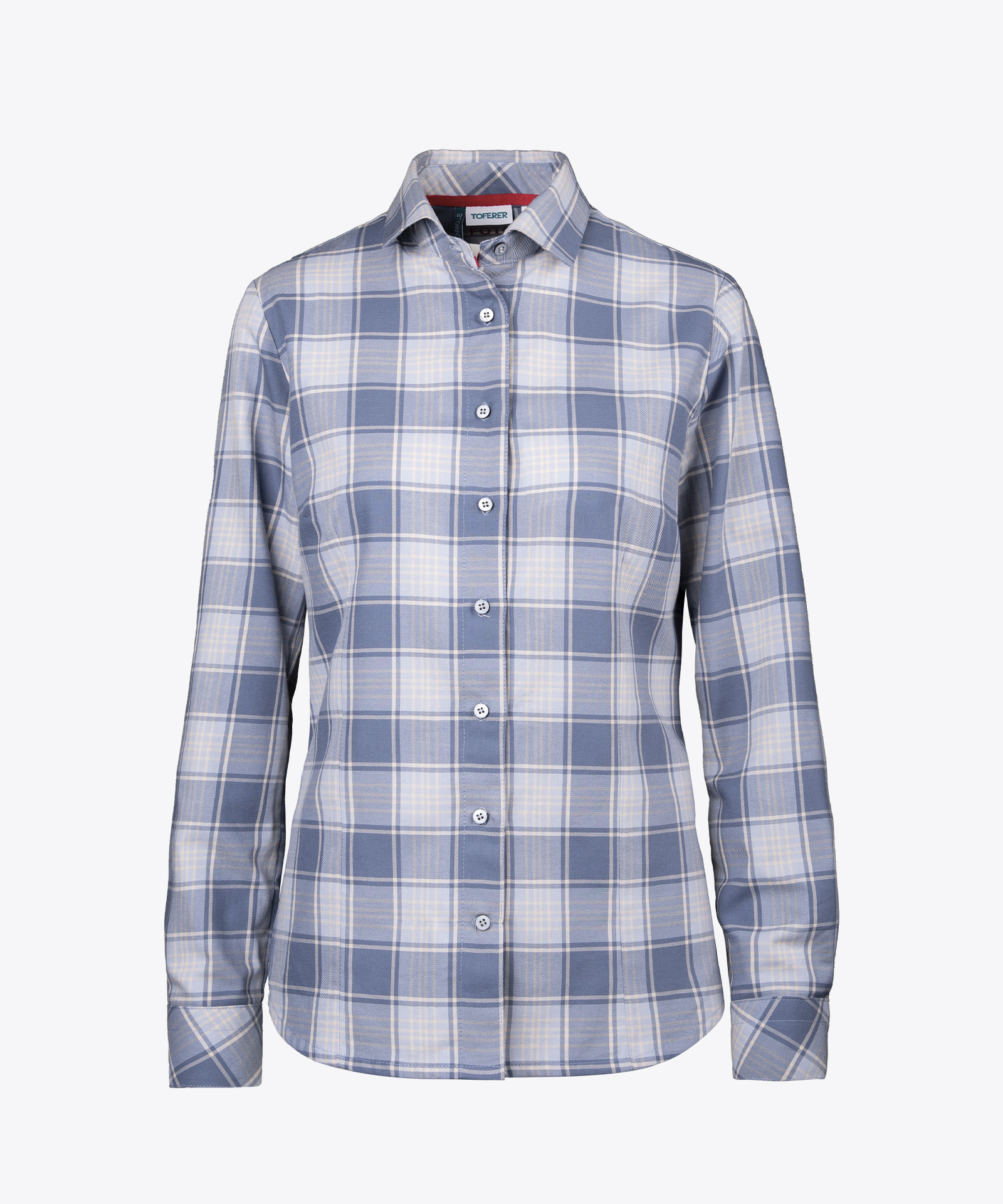 Karobluse in Bio-Baumwollqualität; gerundeter Saumabschluss; Damen mit kurzem Seitennahtschlitz; Haifischkragen Material: 100% Baumwolle Bio