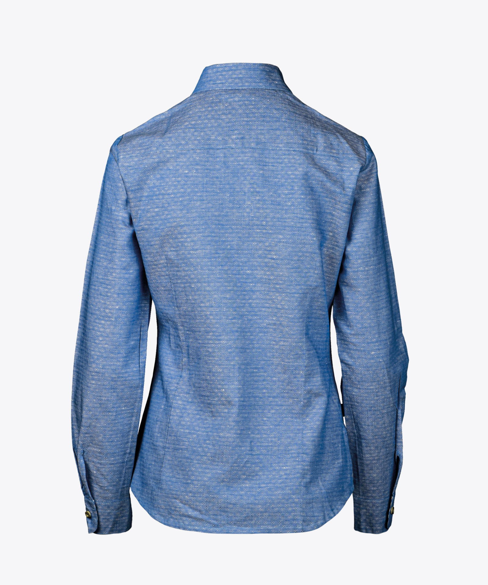 Jacquardstoff in charakteristisch unregelmäßiger Leinenstruktur; farbharmonische Karostoff-Akzente; Knöpfe in Hirschhorn-Optik; gerundeter Saumabschluss; Damen mit kurzem Seitennahtschlitz; Haifischkragen