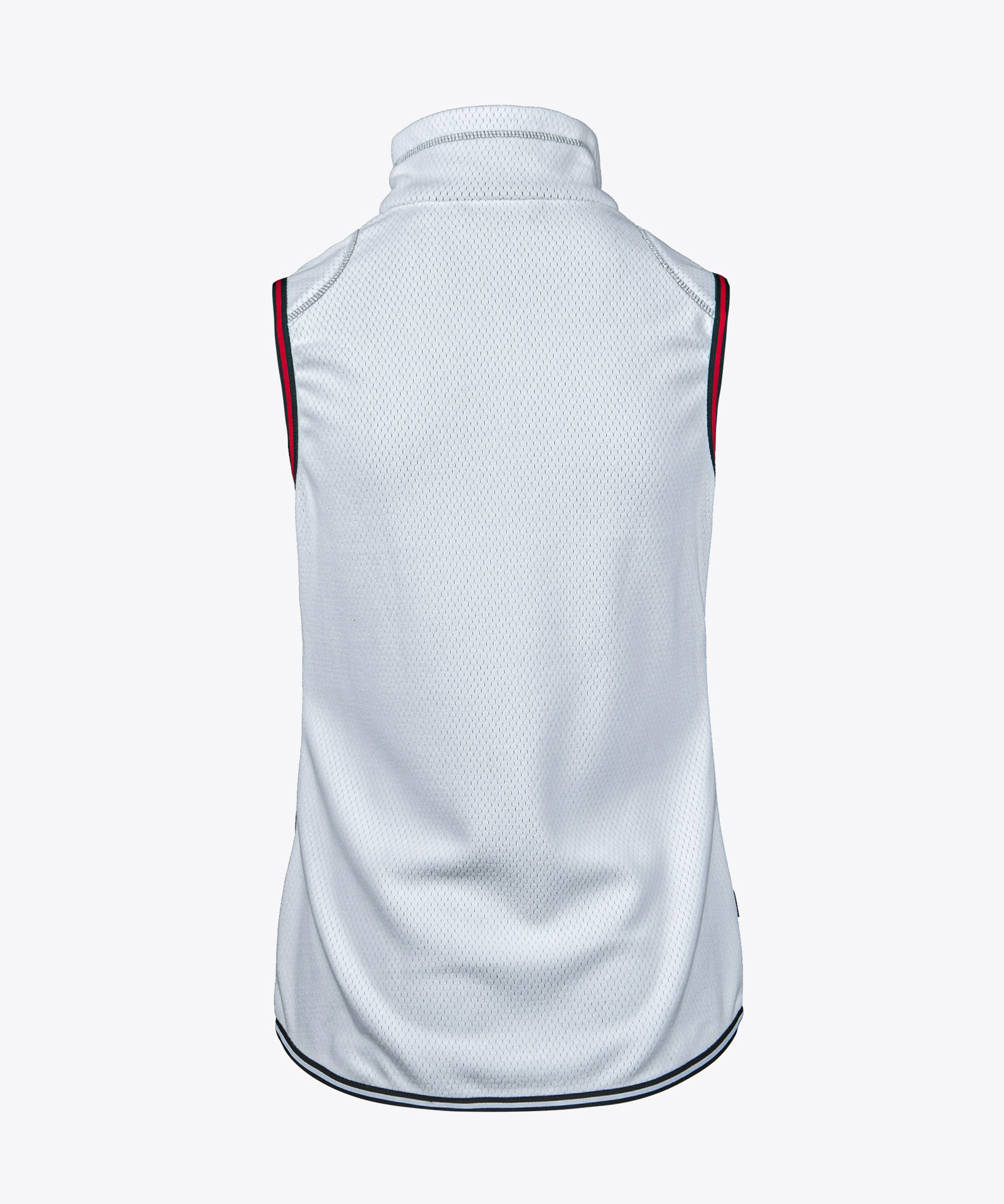Fleeceweste in Wabenstruktur an der aufgerauten Fleeceinnenseite; elastisches Knitshell-Material an den Seiteneinsätzen in Melange; Blende entlang Frontzipp in Woll-Look; hochgeschlossener Kragen; Kontrastierung an Zipps und Elastikeinfassung an Saum und Armabschluss; zwei Zipptaschen; Echtleder-Zippangreifer