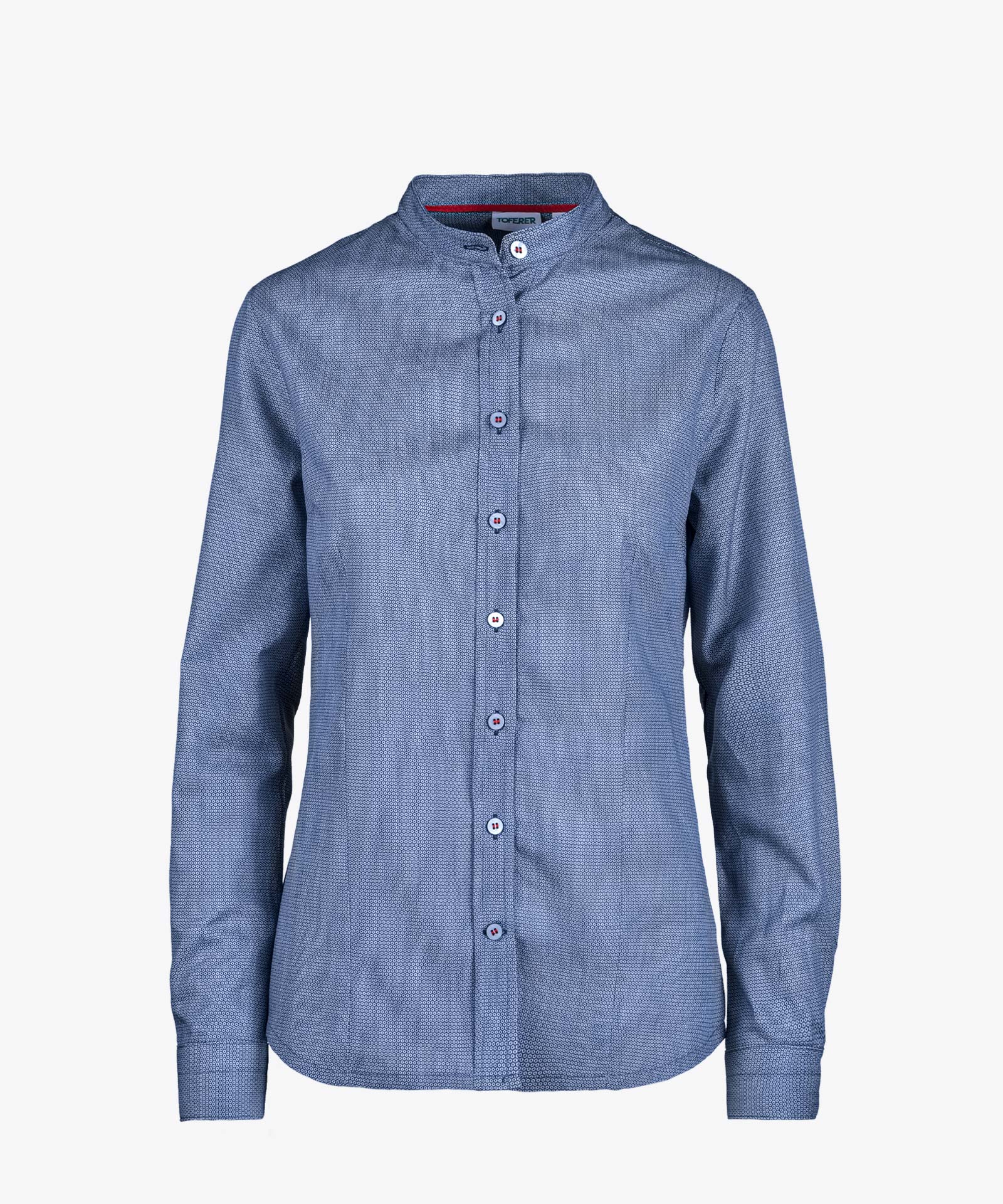 Baumwollmischung mit nachhaltigen Zellulosefasern TENCEL™ Lyocell; TENCEL™ ist eine Marke der Lenzing AG Softmelange mit Minidruckdesign; Farbkontrastakzente an Knöpfen; Stehkragen Material: 70% Baumwolle, 30% Lyocell (TENCEL™)