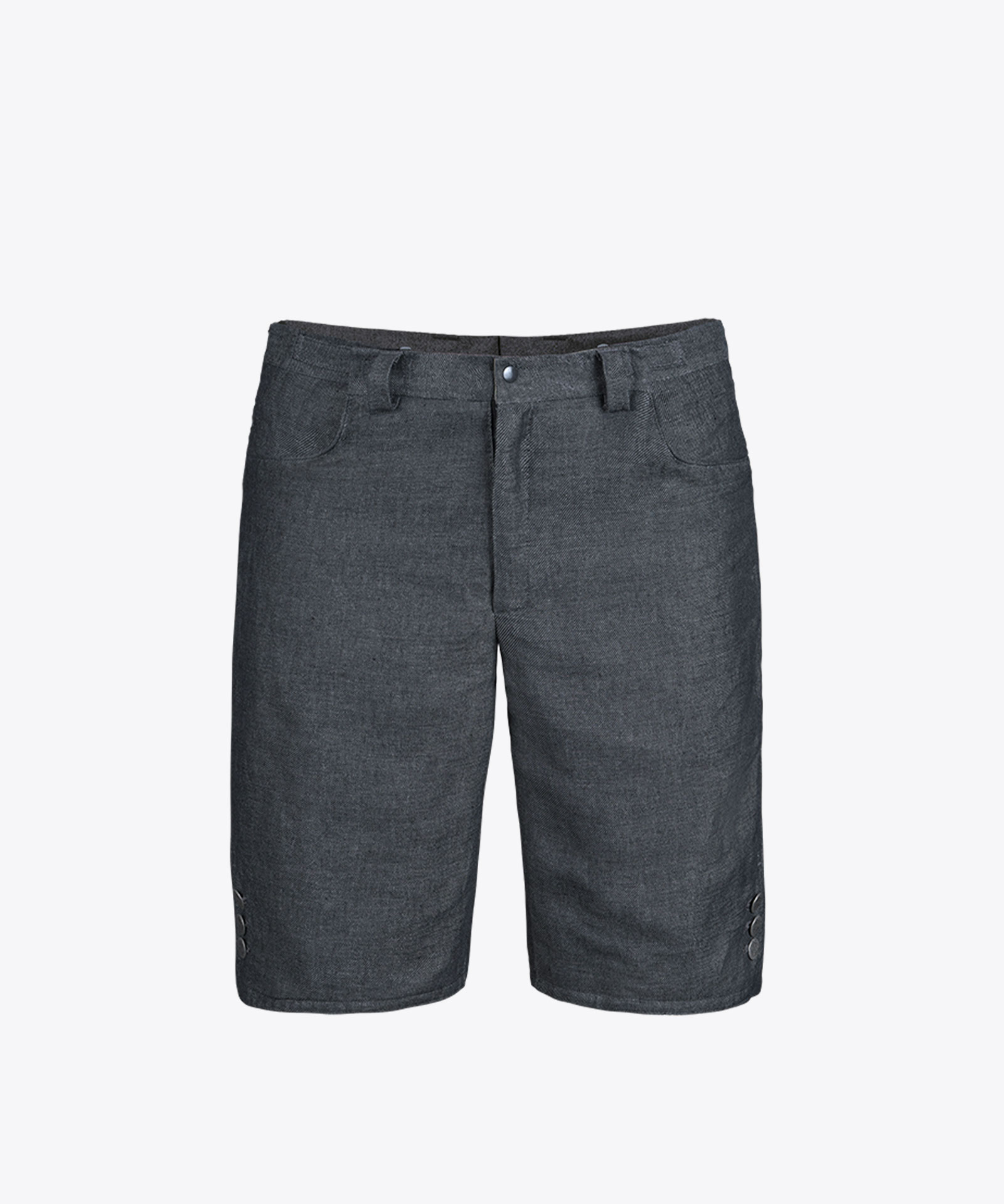 Traditionell anlehnende Bermudas aus speziellem garngefärbtem Délavé-Webstoff in unregelmäßiger Leinenstruktur, erhält durch das Waschen einen Vintage-Look*; zwei seitliche Eingriffstaschen, eine rechte schmale Taschenöffnung; eine aufgesetzte Hinterhosentasche; Bund und Saum zum Regulieren der Weite; Frontzipp; Gürtelschlaufen; Seitenschlitz am Saum mit Metallknöpfen; Hose mit Futter doppellagig verarbeitet